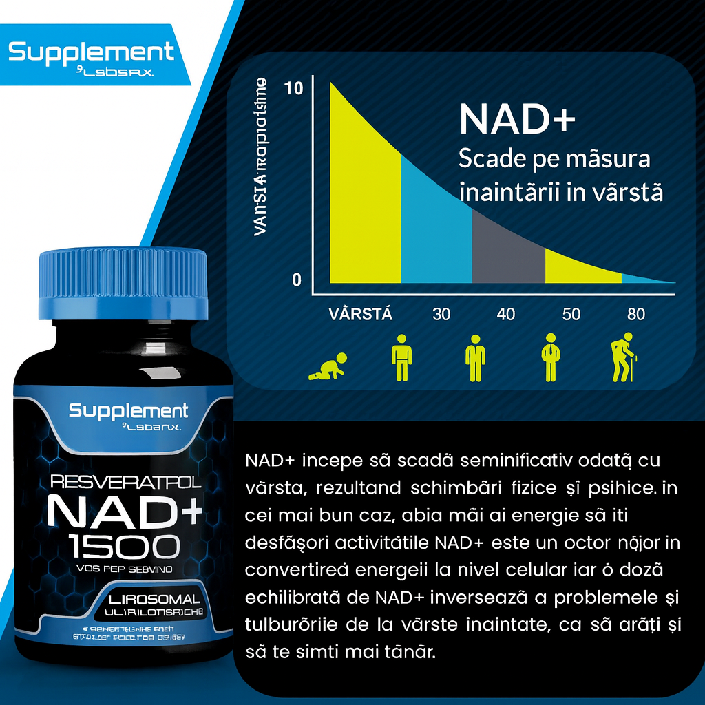 NAD+ este o coenzimă prezentă în fiecare celulă, implicată în producerea energiei, regenerarea celulară și menținerea funcțiilor esențiale ale organismului. Odată cu înaintarea în vârstă, nivelurile de NAD+ scad, ceea ce poate duce la: